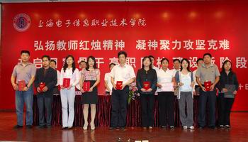 副院长靖素忠宣读了《关于表彰2011年教学质量工程先进等的决定》。副院长徐松鹤宣读了教学质量工程建设颁奖词,副院长严晓华宣读了技能大赛颁奖词,副院长吴依本宣读了教学科研颁奖词。在全场热烈的掌声中,院领导为获奖集体和个人颁奖。此次表彰,形式新颖,主题突出,充分展示了我院一年来围绕骨干院校建设,以教学质量工程建设为抓手,深化教学内涵建设,不断提高教学质量,以技能竞赛为动力,突出职业技能导向,强化实践教学环节,以教学科研为平台,引导带动教学改革,提高人才培养质量,所取得的斐然成绩。获奖教师们潜心育人、无私奉献的高尚师德和勇于创新、勇于实践、攻坚克难的动人事迹,引起了全场教师的深深共鸣。