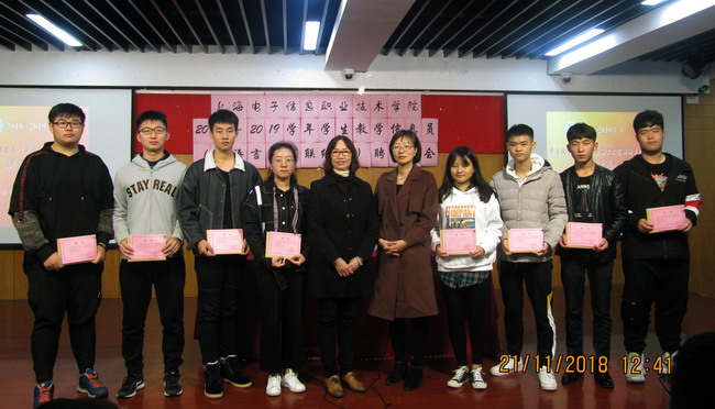 2018年11月21日, 2018~2019学年学生教学信息员(兼语言文字联络员)聘任大会在I401室召开,教务处副处长戴玉珍老师、教务处副处长周玉霞老师及全校学生教学信息员、各二级学院信息组组长与干事、校学生部部长与干事等出席了会议,周玉霞老师主持会议。