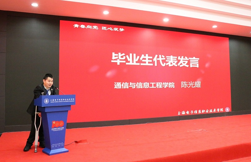 6月25日上午,学校2021届学生毕业典礼在奉贤校区C108报告厅隆重举行。学校领导田钦、赵坚、毛玉婷、张涛、窦争妍、徐德明、方林中出席典礼。二级学院党政负责人、专任教师代表、全体毕业班辅导员、2021届毕业生代表参加毕业典礼。典礼由学校党委副书记、副校长张涛主持。 /P> /P> /SPAN>典礼前,在场全体师生一同观看学校为/SPAN>2021届毕业生精心准备的毕业纪念视频,共同回顾他们在学校三年美好的学习时光。毕业典礼在庄严的升国旗仪式、奏唱国歌中拉开帷幕。/SPAN>/SPAN>/P> /SPAN>/SPAN>低年级学生代表送给毕业生集体朗诵/SPAN>《我骄傲,我是中国人》,深情道出同学们青春向党、匠心筑梦的决心。/SPAN>/SPAN>/P> 机械与能源工程学院陈永平作为专业教师代表,希望同学们以更高的标准要求自己,用能力去改变能改变的,用胸怀接受不能改变的,在任何时候,都要坚守梦想,不放弃,不抛弃。/SPAN>/SPAN>/P> 中德工程学院强佳璐作为毕业班辅导员代表向全体毕业生送上嘱托,她期望同学们要摆正位置,始终保持平和的心态,从零开始,从小事做起,虚心向他人学习,真诚向实践请教。/SPAN>/SPAN>/P> 上海仪电(集团)有限公司、/SPAN>1987级电子设备结构设计专业顾文作为优秀校友代表为即将走向工作岗位的学弟学妹们送上祝福,她提出三点建议与大家共勉:一是要坚守家国情怀;二是要赓续奋斗精神;三是要永葆终身学习。/SPAN>/SPAN>/P> /SPAN>/SPAN>学校党委副书记、纪委书记毛玉婷宣读《上海电子信息职业技术学院关于表彰/SPAN>2021届优秀毕业生的决定》。/SPAN>/SPAN>/P> /P> /P> 副校长窦争妍、方林中分别为2021年上海市优秀毕业生、学校优秀毕业生颁发荣誉证书。/SPAN>/SPAN>/P> /SPAN>/SPAN>“2019上海大学生年度人物/SPAN>”/SPAN>获得者、通信与信息工程学院陈光耀代表全体毕业生发言,他回顾三年在学校的求学时光,分享了自己的收获与成长,表达对师长悉心培养的感谢和对母校的祝愿。他说:/SPAN>“虽然我身体残疾,但未曾放弃,从来没有向命运低头。今后,我将进一步要求和管理自己,强化自律意识,提高进取精神,实现自己的人生价值。”/SPAN>/SPAN>/P> 学校党委副书记、校长赵坚代表学校接受陈光耀及其母亲赠予学校的锦旗。/SPAN>“助残帮扶 恩深如海 泽流及远 千里思源”十六字包含着对学校领导及老师的悉心培养、温暖关怀诚挚的谢意。赵校长为陈光耀颁发毕业证书。/SPAN>/SPAN>/P> 学校副校长徐德明代表学校向毕业生赠送/SPAN>学校用心设计定制的/SPAN>纪念品/SPAN>——一套校训石颗粒积木,这些印有校训“尚德修能 知行合一”的积木,承载着电子信息学院对每位毕业生的祝福和伴随,印刻着大学时光的记忆。/SPAN>/P> /SPAN>徐德明副校长接受了毕业生为表达对母校的深情厚谊捐赠的毕业林树木。/SPAN>/P> /SPAN>学校党委副书记、校长赵坚代表学校致毕业辞,为毕业生讲授/SPAN>“最后一课”。他说道,三年来,同学们一同见证了学校的快速发展:学校建成了国家优质专科高等职业院校,开启了上海“双一流”专科高等职业教育建设,建成上海市依法治校示范校,获评“2018年、2019年亚太职业院校影响力50强”荣誉。学校创新了五年一贯制人才培养模式,成为首批“1+X”证书制度试点院校。学校积极响应国家“一带一路”倡议,牵头的上海电子信息职业教育集团成为首批评价优秀职教集团,以此为基础成立的长三角电子信息职业教育集团被列入中共中央、国务院印发的《长江三角洲区域一体化发展规划纲要》中。三年间,同学们铭记“尚德修能、知行合一”的校训,弘扬“自强不息、开拓创新”的学校精神,积极学习,努力实践,职业能力不断提升,综合素养得以养成。特别是在过去的不平凡的一年,面对突如其来的新冠肺炎疫情,全体电子信息学院人积极投身抗“疫”,同学们的行动彰显了青年一代抗“疫”的坚强力量,展现出对国家和人民的责任担当,让学校倍感骄傲和自豪。临别之际,赵校长勉励毕业生们:要志存高远,永葆进取之心,用更广博的知识、以更坚定的志向面对更复杂的任务和更艰巨的挑战;要敢于担当,坚守责任之心,用善的心去影响社会,用担当的心去奉献社会,用刚毅坚卓的品格成就人生;要懂得感恩,拥有颗宽容之心,带着感恩的心去生活,即使在困境中也能发现美、欣赏美、创造美,真正感受到生活的美。/SPAN>/SPAN>/P> /SPAN>/SPAN>学校领导为毕业生代表们颁发毕业证书。/SPAN>/P> /SPAN>学校党委书记田钦为毕业生讲授毕业党课,在中国共产党成立/SPAN>100周年之际给即将远行的毕业生送上一份拼搏的力量和精神的激励。田书记说,短短几载时光,见证了同学们最青春、最热血、最美好的年华。毕业只是短暂的离别,离别是为了下一次的惊喜相逢。如今,学校已开启“十四五”新征程,希望广大同学继续倾心助力,共同推动学校迈向更新的辉煌。田书记感慨道,三年求学期间,同学们目睹了纪念“五四”运动100周年的盛况,亲历了庆祝新中国成立70周年的盛典。在令人难忘的2020年,同学们以各种方式勇敢地投身伟大的抗疫斗争,诠释了新时代大学生的社会责任感和担当精神。今年的毕业季又恰逢中国共产党成立100周年,同学们是与伟大的时代同向而行的一代人,是实现第二个百年奋斗目标的建设者、见证者。田书记给毕业生们提出三点期望:一是紧跟时代潮流,在砥砺奋进中彰显人生价值。站在“第
