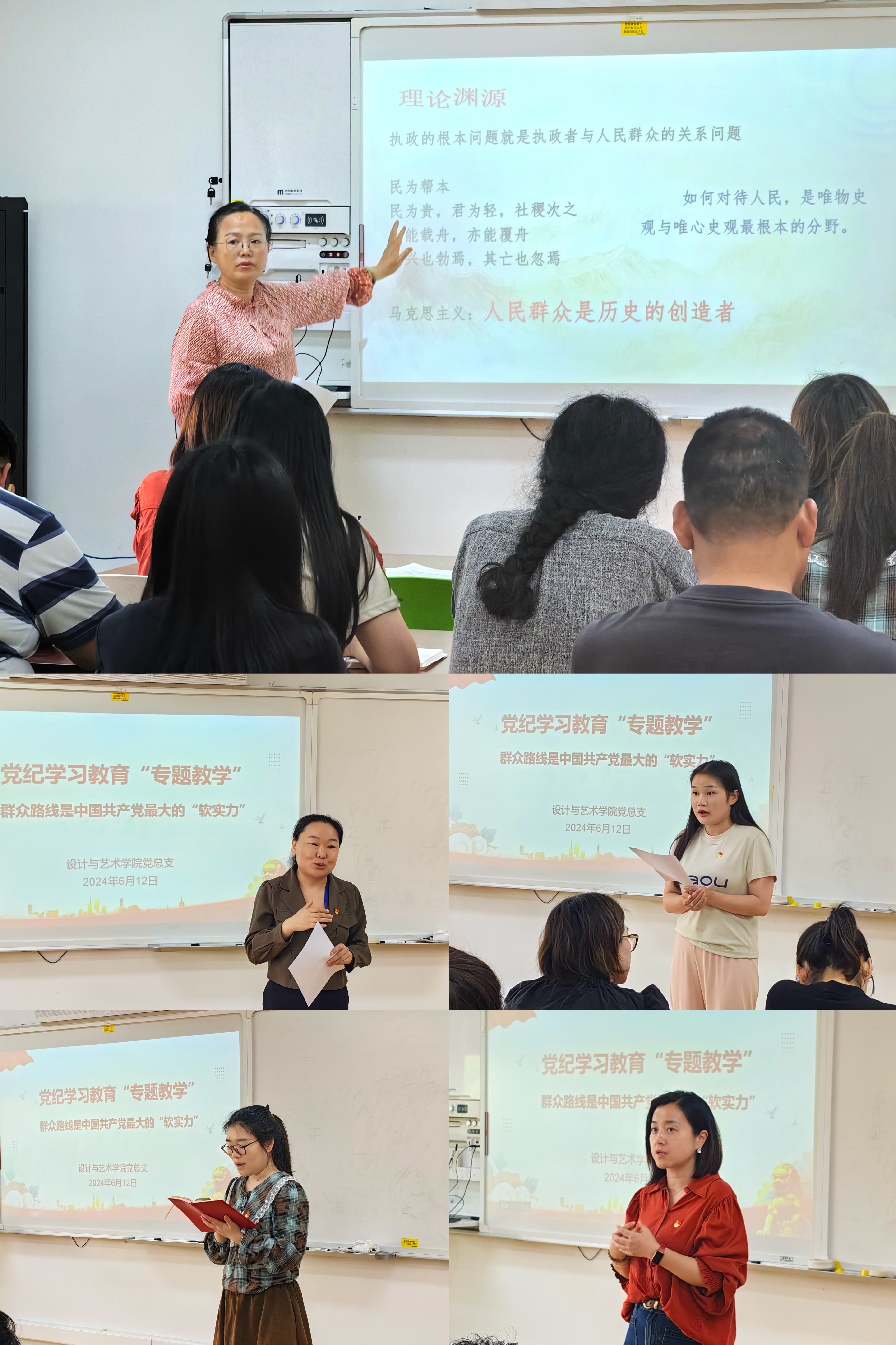 为推动学院党纪学习教育不断深入开展,加强党的纪律建设、推进全面从严治党工作,根据学校党委的工作部署,6月12日,设计与艺术学院党总支组织开展了党纪学习教育“专题教学”活动。学习活动邀请马克思主义学院专任教师、副教授赵铁妩主讲,设计与艺术学院全体党员、入党积极分子参加学习,活动由设计与艺术学院党总支书记高晓昧主持。