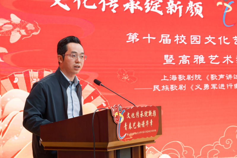 4月22日,学校“文化传承绽新颜,青春艺韵谱华章”第十届校园文化艺术节开幕式暨高雅艺术进校园文艺党课专场演出在奉贤校区C108报告厅隆重举行。学校全体校领导,各二级学院党政领导、校团委班子、各二级学院团总支书记、中层干部、教职工及学生代表出席开幕式。