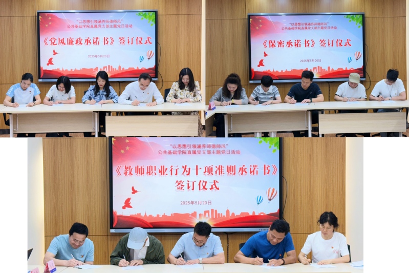 5月20日上午,公共基础学院直属党支部在A210举行“以思想引领涵养师德师风”主题党日活动。学院全体党员及教师代表共同参与。活动通过理论学习、警示教育、榜样引领、承诺践诺等环节,以“学、警、行、悟”四步强化师德意识,深化教师队伍思想政治与作风建设,推动党建与业务深度融合。