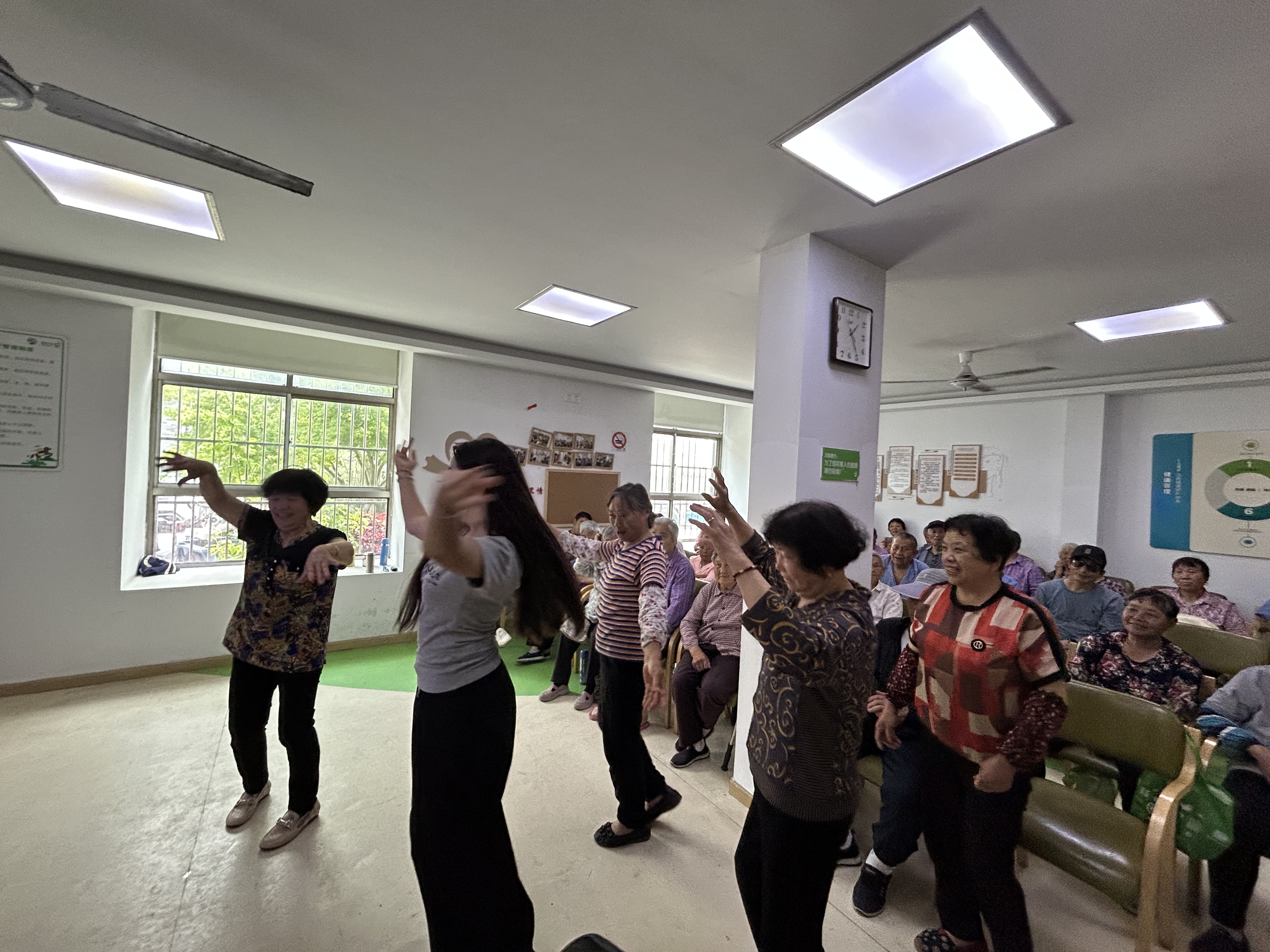讲座结束后,进入了轻松愉快的文艺交流环节。学生们精心准备了多个舞蹈节目,有活力四射的现代舞,也有优美典雅的民族舞。精彩表演赢得了老人们的阵阵掌声和欢呼声,不少老人也被现场欢快的氛围所感染,跟着节奏轻轻摇摆。随后,学生们邀请老人们一起跳舞,大家手拉手,围成圈,共同舞动起来。在舞蹈过程中,学生们耐心地教老人们舞蹈动作,老人们也学得十分认真,脸上洋溢着幸福的笑容。