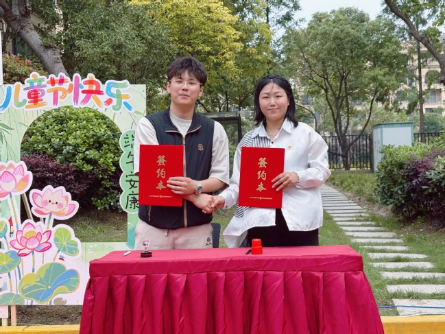 活动上,外语学院团总支与浦兰社区团支部举行了庄严的团建联建签约仪式。根据协议,双方将在未来一年围绕社区服务、文化交流、志愿服务等领域开展深度合作。外语学院将依托教育资源优势,为社区提供银发老人送教、红色主题教育及亲子活动支持;浦兰社区则为学生开展“大思政课”教学提供实践场地与设施保障,共同推动“资源共享、优势互补、协同发展”的校地联建模式落地。