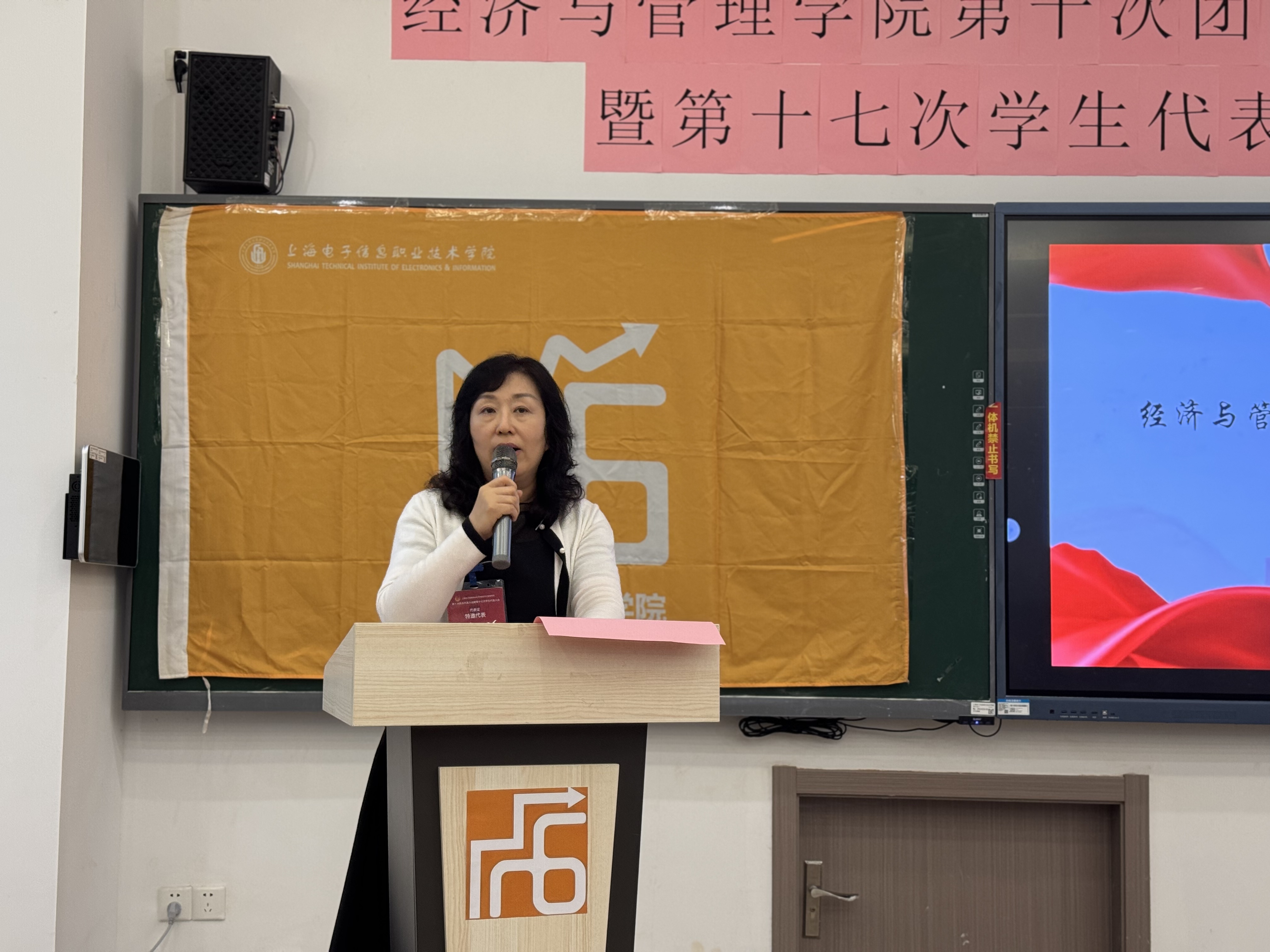 经济与管理学院党总支副书记、副院长宋慧涛老师代表学院党总支向大会的胜利召开表示祝贺。宋老师回顾了学院团总支和学生会在思政引领、社会实践、创新创业、志愿服务、校园文化以及权益服务等方面的工作成果。她希望,团总支和学生会成员要深入学习贯彻习近平新时代中国特色社会主义思想和党的二十大精神。持续加强自身建设,汇聚青年智慧,以服务为核心,加强组织建设,提升学生会和团总支的工作效能。发挥好桥梁纽带作用,推动学院团学工作实现新发展、开创新局面。