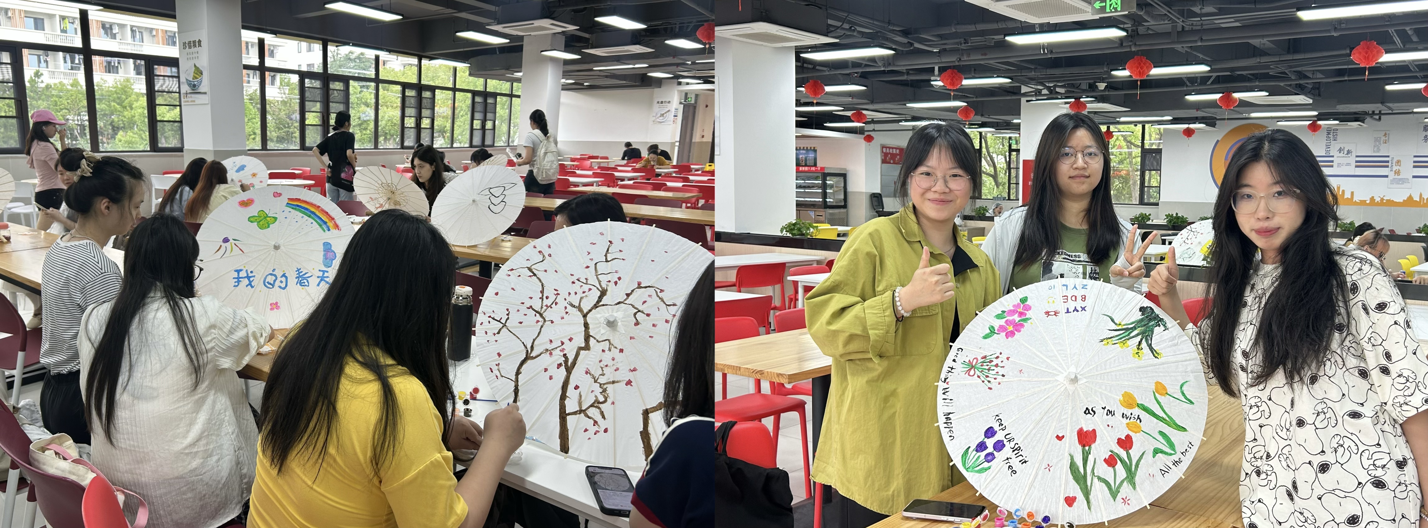 5月28日,经济与管理学院在金山校区食堂二楼举办非遗文化体验之“古韵非遗·纸伞传情”活动,吸引了近70名同学参与。