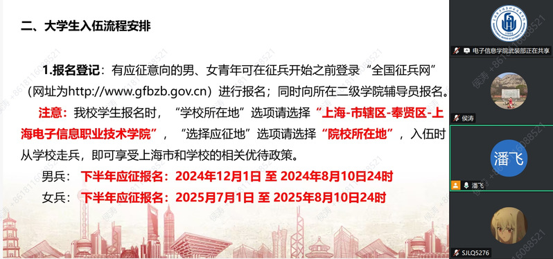 为深入贯彻习近平强军思想,激发青年学子投身国防事业的热情,6月5日,机械与能源工程学院联合学校武装部通过线上平台召开2025年征兵政策宣讲会。