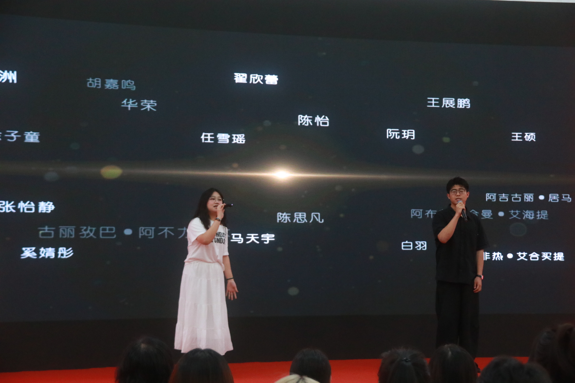 在这特别的时刻,学生代表左沁雅、庄禹楠带来的歌曲《那些年》,满是对青春岁月的追忆与眷恋,将大家带回了那些携手并肩、为梦想拼搏的日子。