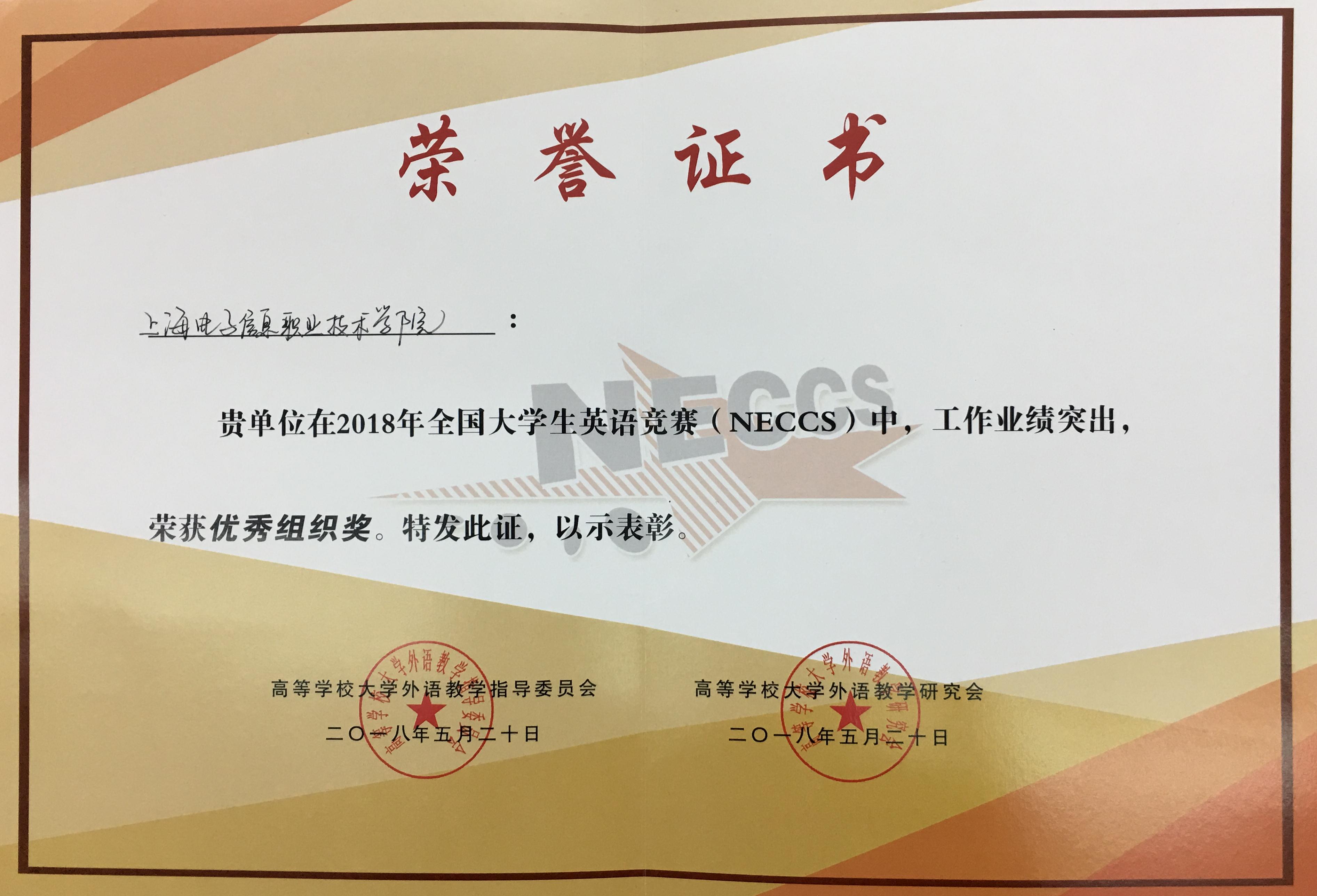 永利官网荣获2018年全国大学生英语竞赛(NECCS)高职组(D类)一等奖