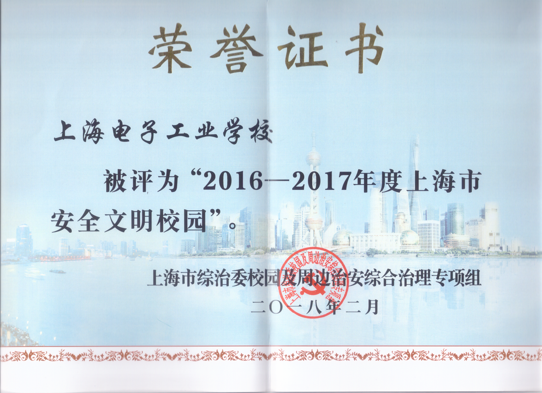 永利官网中专部(上海电子工业学校)被评为“2016—2017年度上海市安全文明校园”