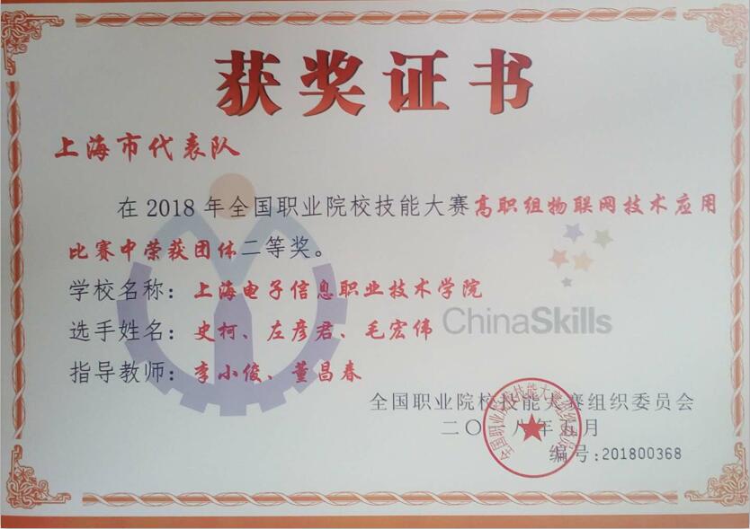 通信与信息工程学院物联网技术应用参赛队喜获全国职业院校技能大赛二等奖