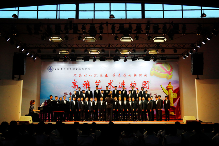 5月8日晚18时,由教育部、文化部、财政部支持的 “不忘初心跟党走,青春唱响新时代”2018年高雅艺术进校园暨中国音乐家协会爱乐男声合唱团专场演出在上海电子信息职业技术学院室内体育馆隆重举行。学...