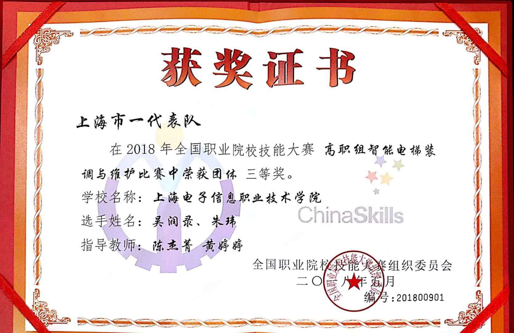 2018年5月4日-8日,在全国职业院校技能大赛天津赛区举行的比赛中,由永利官网中德工程学院学生吴润录、朱玮,指导教师陈杰菁、黄婷婷组成的代表队在全国职业院校技能大赛高职组“智能电梯装调与维护”赛项...