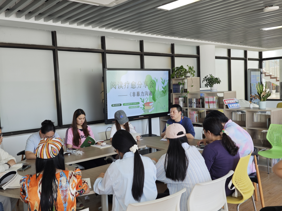 6月6日,在图书馆悦读空间,和润书会“阅读疗愈系列”迎来了第三期,本期书会分享的是马歇尔·卢森堡博士的经典著作——《非暴力沟通》。学校心理健康教育与咨询中心易培老师主持读书分享会。《非暴力沟通》通过结...