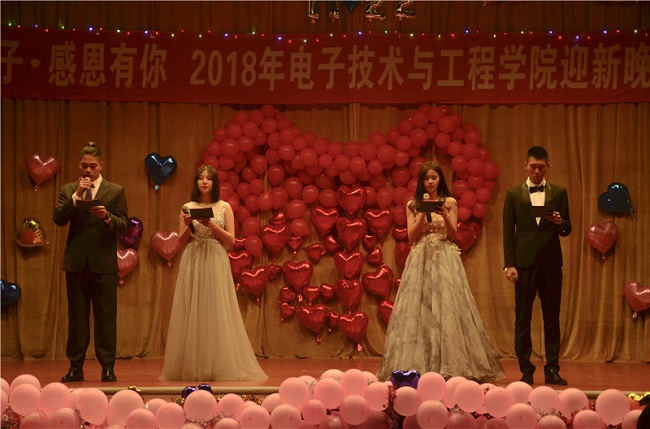 11月22日晚,以“心系电子·感恩有你”为主题的2018年电子技术与工程学院迎新晚会在室内运动馆顺利举行。电子技术与工程学院党总支副书记、副院长陈真、副院长李军锋、学管办主任李翔、教师代表以及2018级全体新...