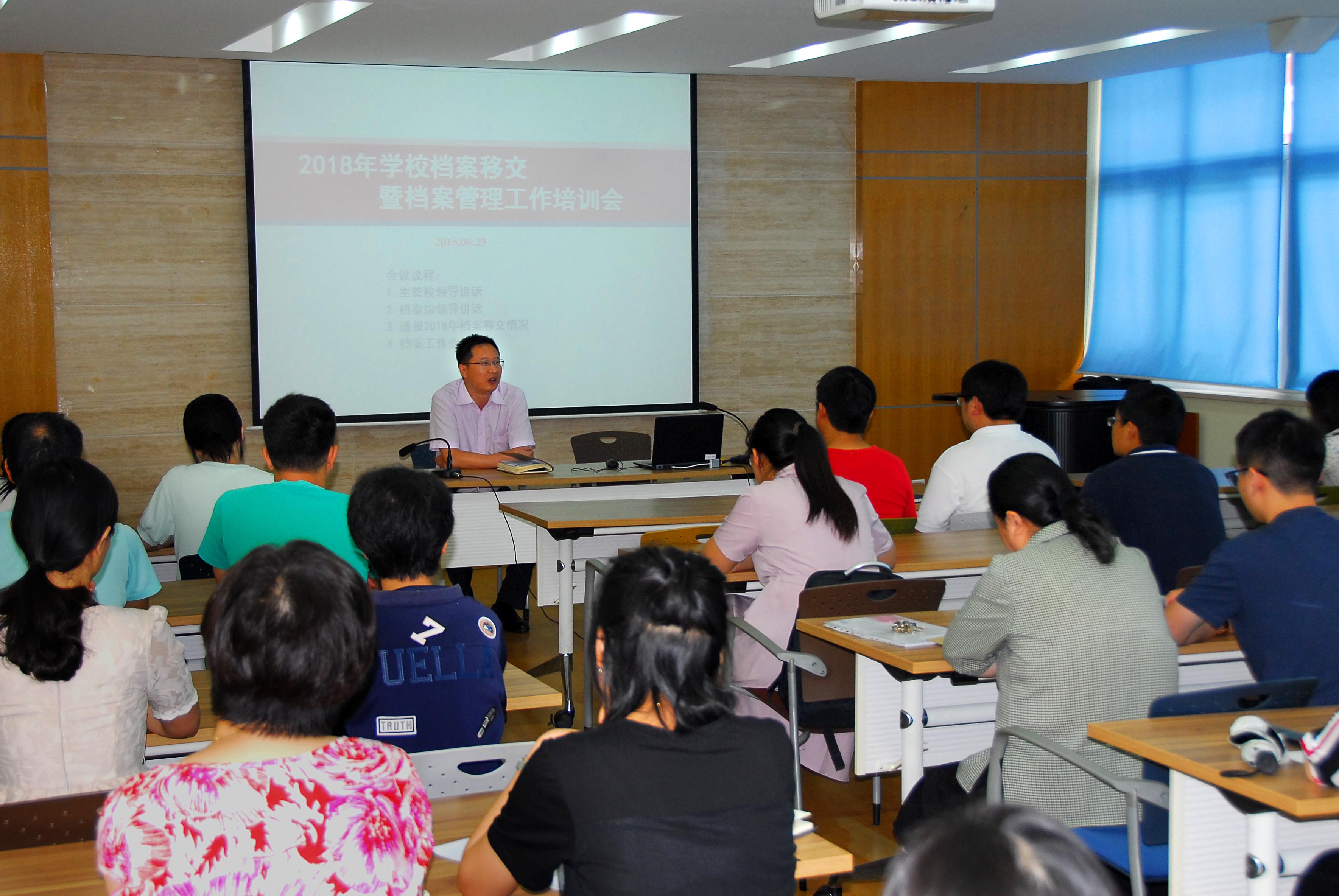 6月29日上午9:00,综合档案馆在奉贤校区A楼207会议室举办了2018年档案移交暨档案管理工作培训会。综合档案馆和各部门、二级学院专兼职档案管理员四十余人参加了本次培训会。 培训会上,张涛副校长首...