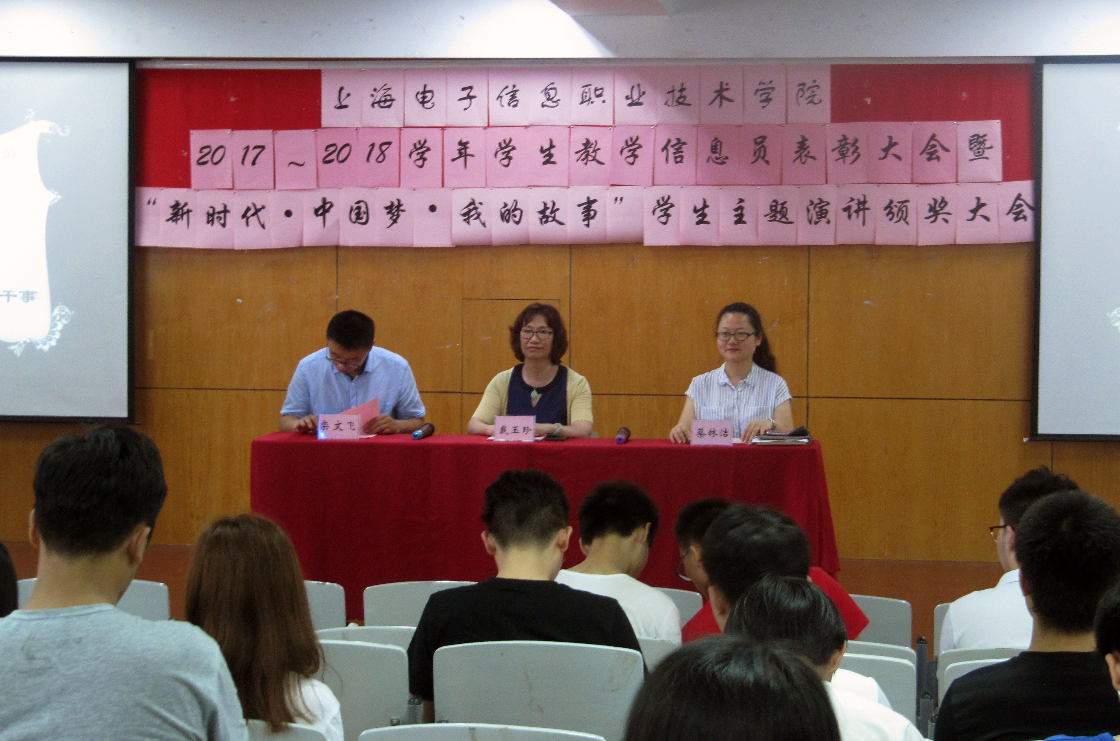 2018年6月21日,学校2017-2018 学年学生教学信息员表彰大会暨“新时代•中国梦•我的故事”学生主题演讲颁奖大会召开在奉贤校区I401顺利召开。教务处副处长戴玉珍老师、团委副书记蔡林洁老师...
