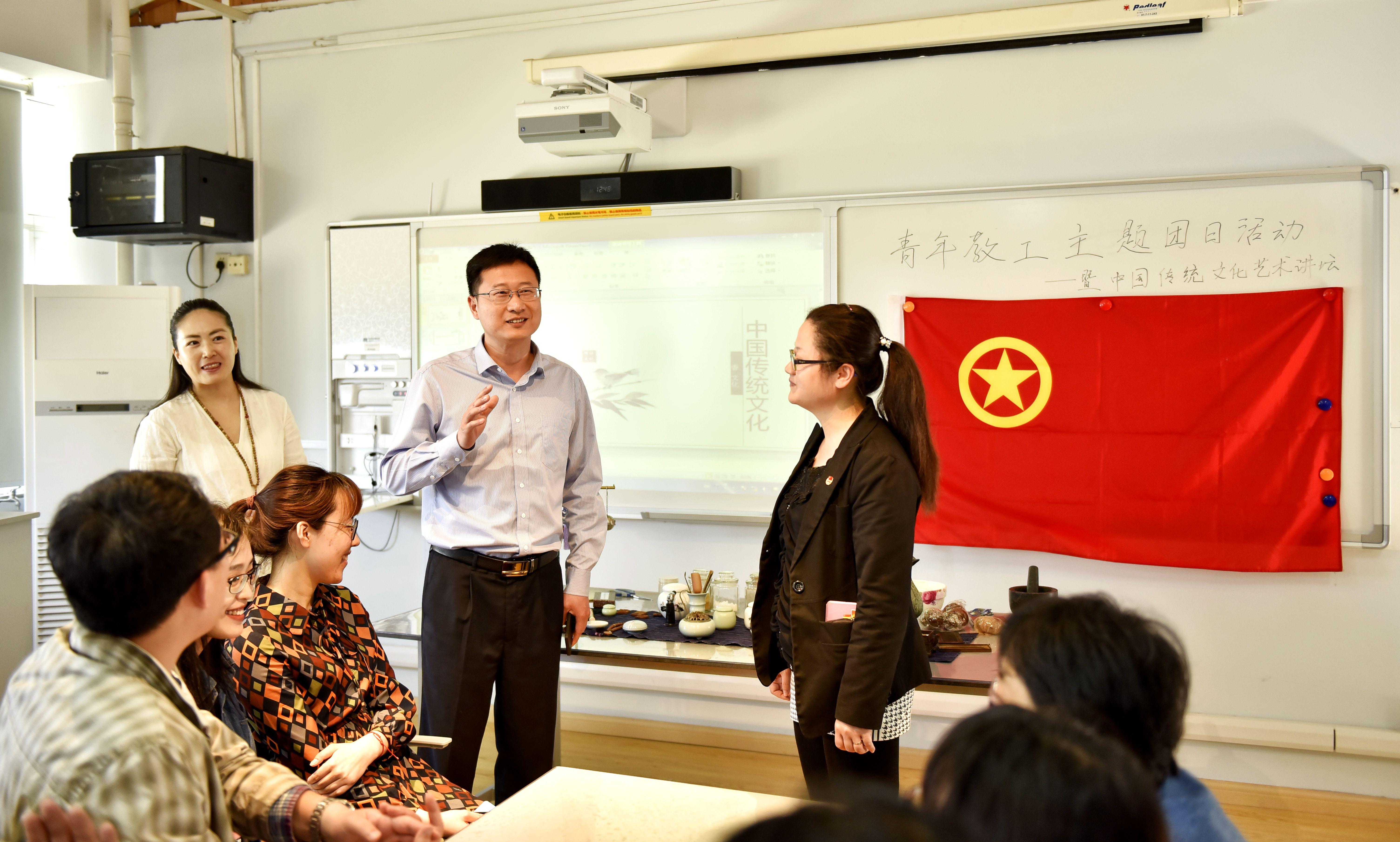 为庆祝第99个“五四”青年节,丰富青年教工的精神文化生活,增强共青团组织的凝聚力和吸引力,弘扬中华民族传统文化。5月11日,校团委在E 211教室开展青年教工主题团日活动暨中国传统文化艺术讲坛。学...